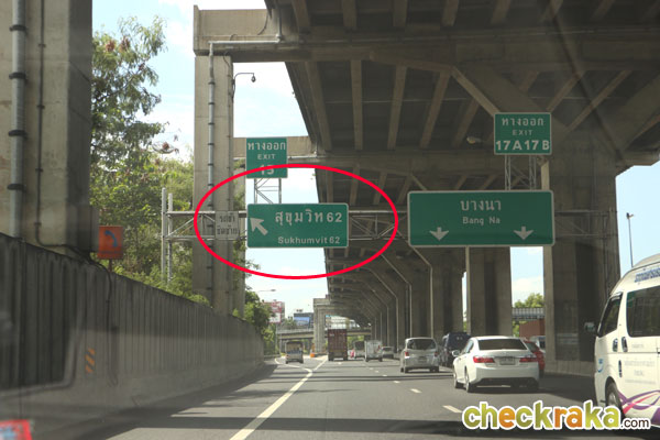 (We drive from Chalerm Maha Nakhon Express Way towards Bangna and then exit at Sukhumvit 62 Exit)