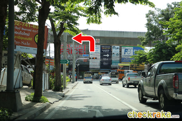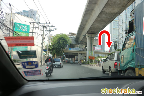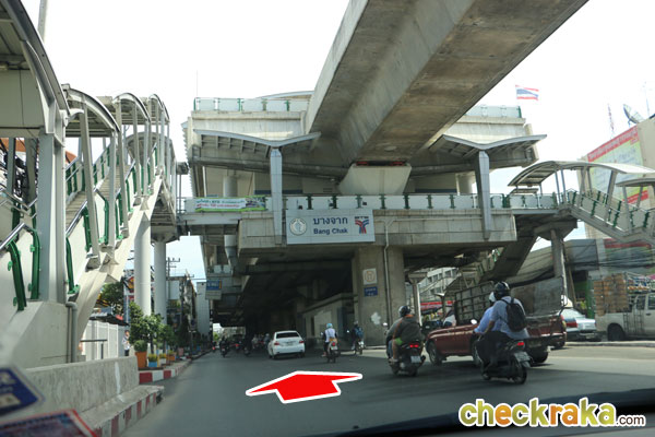 (Once you turn left to Sukhumvit Road, you will see BTS Bang Chak Station)