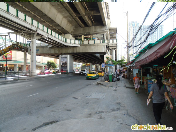 พอเข้าถนนสุขุมวิทมาจะเห็นสถานีรถไฟฟ้า BTS บางจากก่อนเลยค่ะ