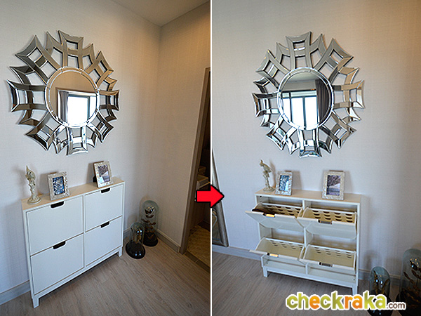 ฟังก์ชันตู้วางรองเท้าเมื่อเปิดออกดูเก็บรองเท้าได้ไม่มากนักนะคะ
