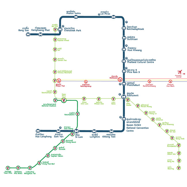 แผนที่เส้นทางการเดินรถไฟฟ้า (Subway and Skytrain Maps)