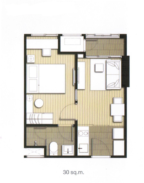 1 ห้องนอนขนาด 30 ตร.ม.