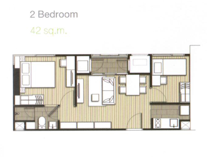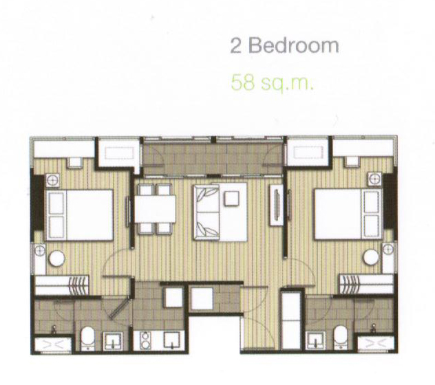 2 ห้องนอนขนาดตั้งแต่ 42-58 ตร.ม. (รวมห้องที่เรียกว่า 1 Bedroom Plus ด้วย)