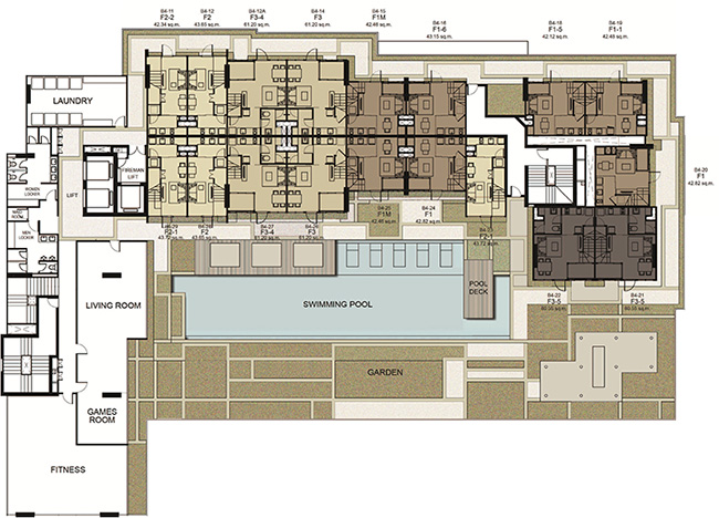 two-bedroom unit ranging in size from 42-58 sq m, (including the so-called "1 Bedroom Plus")