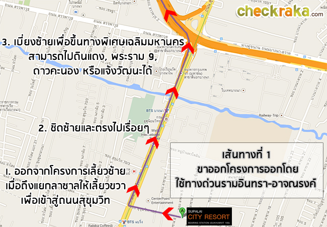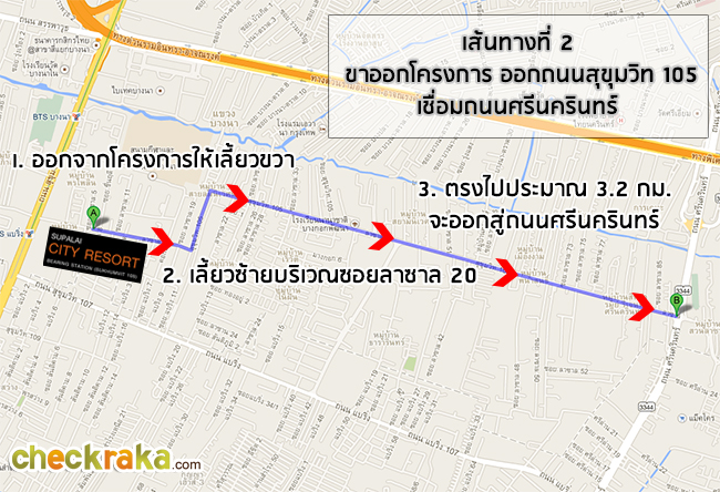 เส้นทางที่ 2 - ขาออกโครงการ ออกโดยใช้ถนนสุขุมวิท 105 เชื่อมถนนศรีนครินทร์