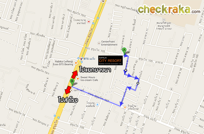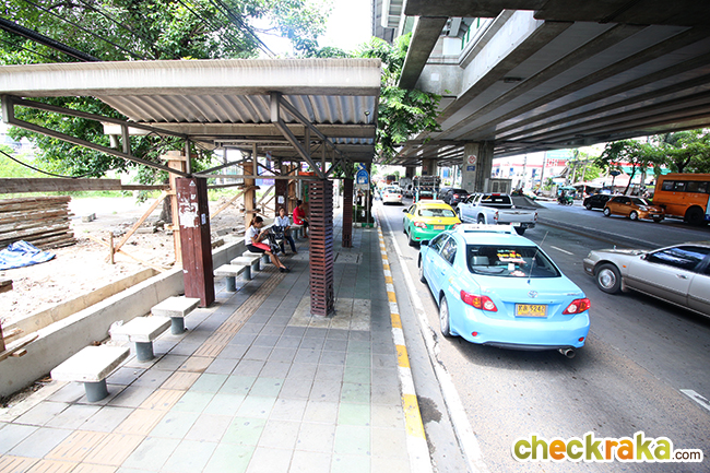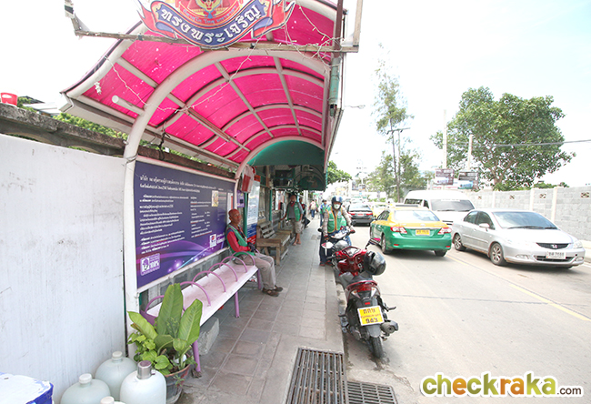 ส่วนป้ายรถประจำทางจะอยู่ตรงสถานี BTS แบริ่ง ไม่ไกลจากปากซอยสุขุมวิท 105