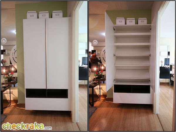 มองเข้าไปจากโซนห้องรับแขกซ้ายเป็นห้องนอนมีตู้เก็บรองเท้าขนาดใหญ่หน้าห้อง