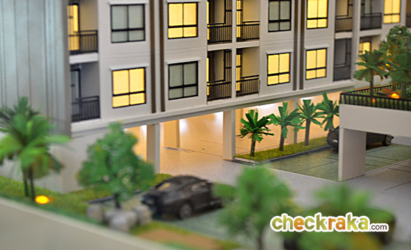 - พื้นที่จอดรถยนต์รอบโครงการประมาณ 49 % (รวมจอดซ้อนคัน)