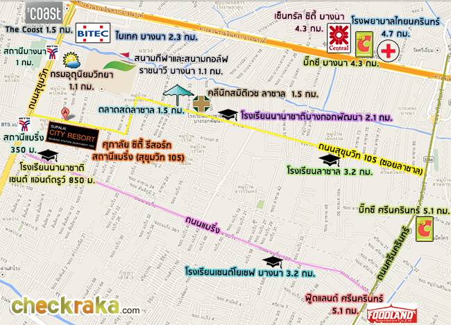 - ที่ตั้งโครงการ: ซอยสุขุมวิท 105 (ลาซาล) ระหว่างซอยลาซาล 6-8 ถนนสุขุมวิท แขวงบางนา เขตบางนา กรุงเทพมหานคร