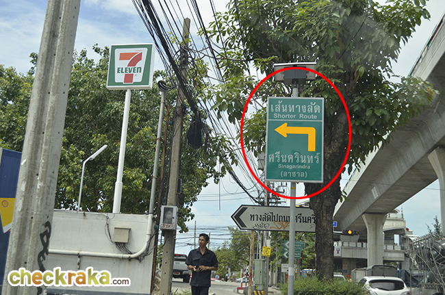 ขับตรงมาสักพักจะเจอป้ายข้างบนนี้ (เส้นทางลัดศรีนครินทร์ (ลาซาล)) ให้เราเตรียมเลี้ยวซ้ายเข้าซอยลาซาลเลยค่ะ