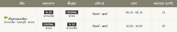 ที่นี่ให้บริการเรือด่วนพิเศษธงเขียว เส้นทาง ปากเกร็ด - สาทร