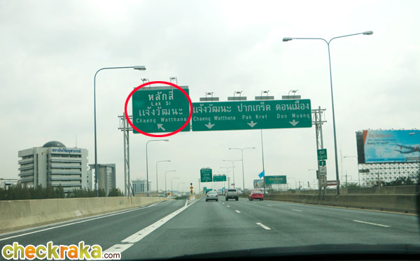 ขับตรงมาสักพักจะเจอป้ายข้างบนนี้ให้เตรียมเลี้ยวซ้ายลงหลักสี่-แจ้งวัฒนะ