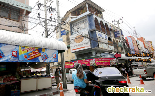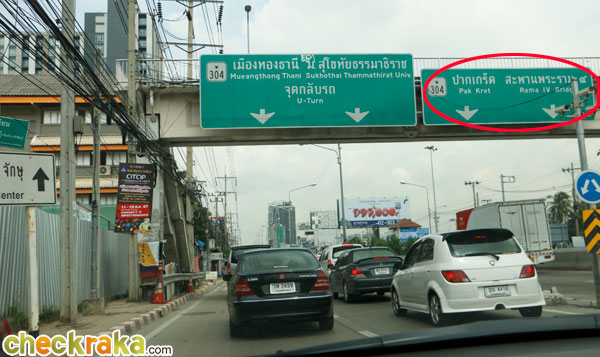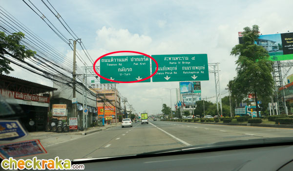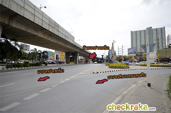 ตรงมาจากเดอะมอลล์งามวงศ์วาน เจอแยกแครายให้เลี้ยวขวาตามป้ายเพื่อไปปากเกร็ด