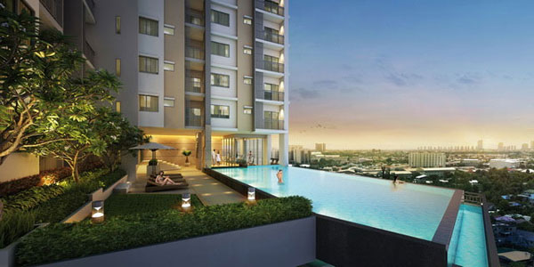 ภาพจำลองบรรยากาศสระว่ายน้ำแบบ Infinity Edge Pool ระบบน้ำเกลือ