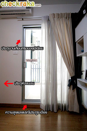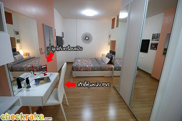 มองจากหน้าประตูระเบียงห้องนอนขวาเป็นตู้เสื้อผ้าหน้าบานกระจกเงาซ้ายเป็นโต๊ะเครื่องแป้งและชุดบิ้วท์อิน