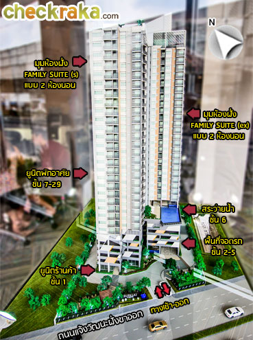 - อาคารชุดพักอาศัยสูง 30 ชั้น จำนวน 1 อาคาร รวม 404 ยูนิต