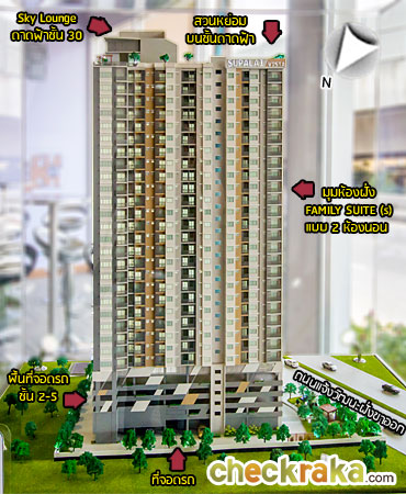 - อาคารและตัวโครงการโดยรวม -โดยรวมดีไซน์ของตัวอาคารยังคงเป็นแบบเรียบง่ายใช้สีโทนอ่อน เน้นความเป็นอาคารประหยัดพลังงานตามสไตล์ศุภาลัย กับอาคาร High-Rise รูปทรงตัว L สูง 30 ชั้น จำนวน 1 อาคาร ซึ่งถือว่าเป็นคอนโดที่สูงที่สุดเมื่อเที่ยบกับคู่แข่งบริเวณนั้น โดดเด่นด้วย Sky Lounge และ Roof Garden บริเวณชั้น 30 ของดาดฟ้า สามารถขึ้นมานั่งเล่นพักผ่อนและชมวิวโดยรอบได้แบบ 360 องศา นอกจากนี้ยังมีสิ่งอำนวยความสะดวกทั้งซาวน่า ฟิตเนส สระว่ายน้ำ โดยสัดส่วนของการใช้ลิฟต์ถือว่าพอใช้ได้ไม่หนาแน่น อยู่ที่ประมาณ 134 ยูนิตต่อลิฟต์ 1 ตัวในส่วนที่จอดรถทั้งบนอาคารและรอบๆ อาคารรวมประมาณ 142 คัน (รวมจอดซ้อนคัน) ถือว่าค่อนข้างหนาหนาแน่น และอาจแย่งกันจอดได้