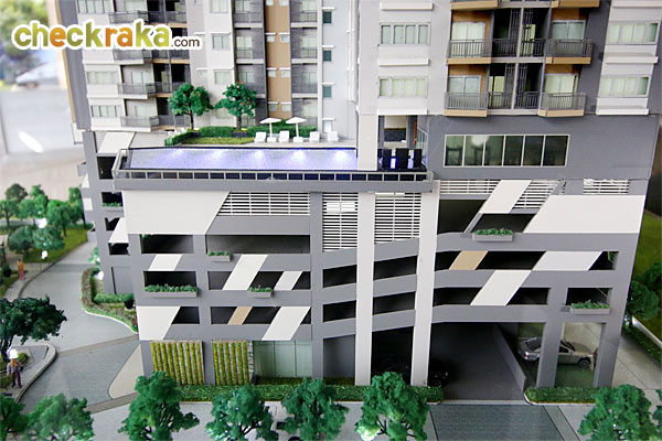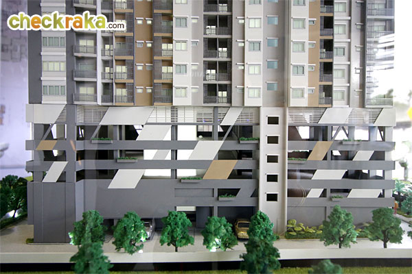 โมเดลจำลองพื้นที่จอดรถบริเวณใต้อาคารด้านหลังของโครงการ