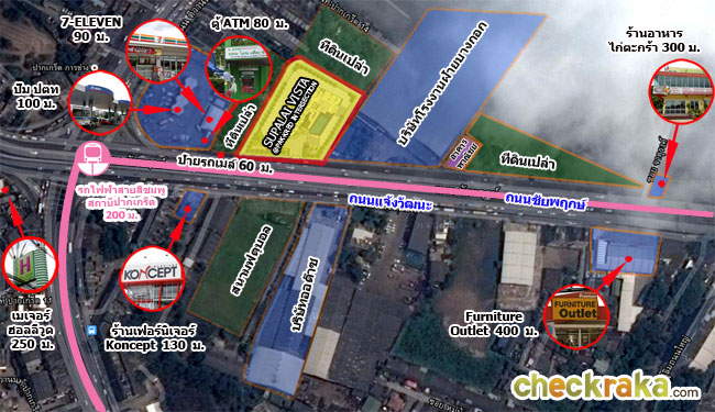 รถไฟฟ้าสายสีชมพูสถานีศรีรัชอยู่ใกล้ ศุภาลัย วิสต้า ห้าแยก ปากเกร็ด ประมาณ 200 เมตร