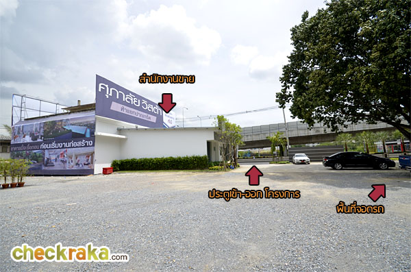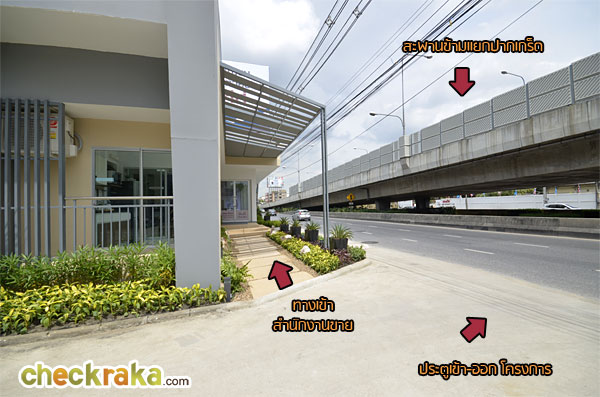 เราย้อนกลับมาดูฝั่งที่จะไปห้าปากเกร็ดกันบ้างค่ะ เริ่มจากป้ายโครงการบริเวณด้านหน้าทางเข้า