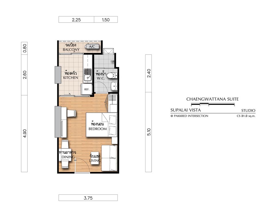 - CHAENGWATTANA SUITE ห้องสตูดิโอ (1 ห้องน้ำ, 1 ห้องครัว) - เนื้อที่ 31.00 ตร.ม.