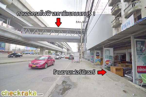 ถัดไปก็จะเป็นร้านขายเฟอร์นิเจอร์ ตรงนี้จะเป็นทางออกรถไฟฟ้าสายสีม่วง สถานีแยกนนทบุรี 1
