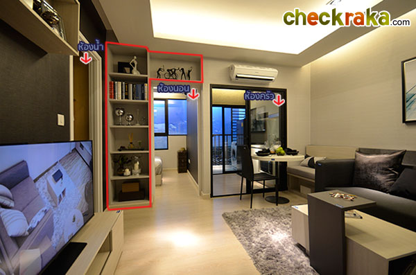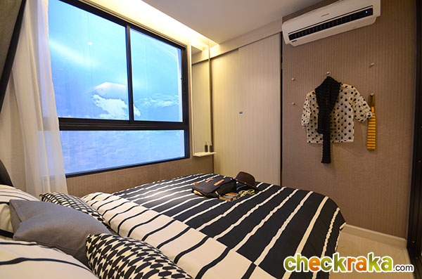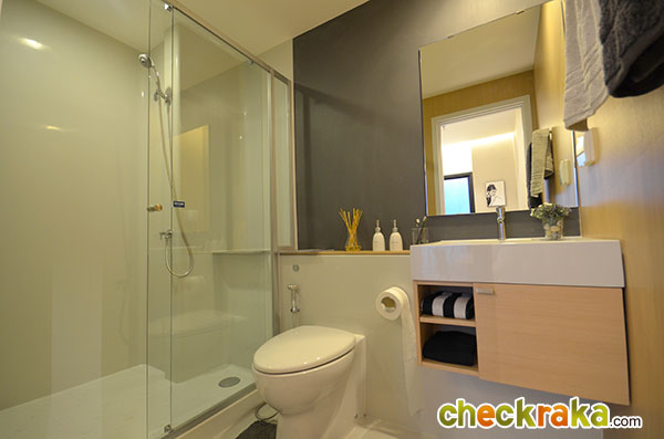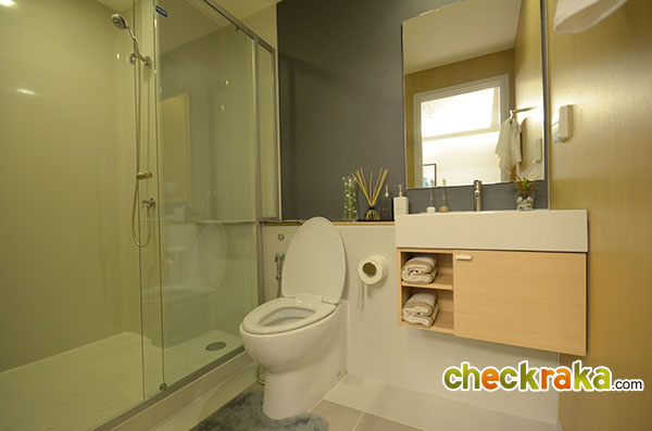 - รูปแบบห้องและวัสดุ - โครงการมีห้องให้เลือกถึงสามแบบ ขนาดตั้งแต่ 25.65 - 59.37 ตร.ม. เหมาะทั้งผู้อยู่อาศัยเดี่ยวไปจนถึงครอบครัวขนาดย่อม ส่วนการจัดวางพื้นที่การใช้งานต่างๆ ของห้องตัวอย่างแบบ 1 ห้องนอนทั้งในขนาด 25.60 ตร.ม. และห้องขนาด 30.10 ตร.ม. ถือว่าทำได้ดีและลงตัว โดยพื้นที่การใช้งานของห้องต่างๆ มีขนาดกำลังดี ถึงแม้ว่าพื้นที่ในห้องนอนของห้องขนาด 25.60 ตร.ม. จะมีพื้นที่ค่อนข้างจำกัดแต่ก็ถือว่าจัดสรรออกมาได้ดีสำหรับพื้นที่ห้องเท่านี้ (ห้องขนาด 25.60 ตร.ม. ถ้าอยู่คนเดียวถือว่าลงตัวมากแต่ถ้าอยู่สองคนน่าจะอึดอัดไปสักหน่อย) ส่วนวัสดุที่ทางโครงการเลือกใช้ถือว่าอยู่เกณฑ์ที่ค่อนข้างสมราคา เช่น เฟอร์นิเจอร์ที่โครงการแถมคือของ STARMARK นอกจากนั้น การที่โครงการเลือกใช้ห้องน้ำแบบสำเร็จรูปก็ถือว่ามีข้อดี เพราะช่วยลดปัญหาจุกจิกจากการก่อสร้างที่ไม่ได้มาตรฐานในห้องน้ำไปได้เยอะ ถึงแม้ห้องน้ำสำเร็จรูปอาจจะมีข้อจำกัดในการซ่อมบำรุงอยู่บ้าง