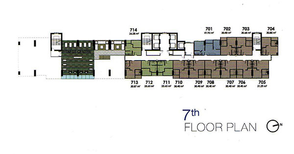 Floor Plan ชั้น 7 เป็นที่ตั้งของห้องฟิตเนส และยูนิตพักอาศัย 14 ยูนิต