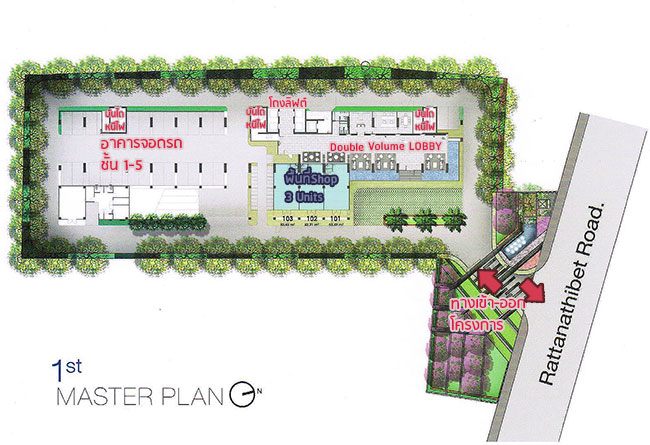 โมเดลด้านทิศเหนือคือฝั่งทางเข้า-ออกที่อยู่ติดกับถนนใหญ่รัตนาธิเบศร์