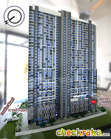 - พื้นที่จอดรถ 38% ของจำนวนยูนิตทั้งหมด เป็นแบบไม่ล็อคตำแหน่ง ที่ชั้น 1-5