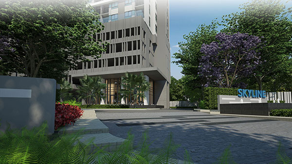 โครงการสกายไลน์ รัตนาธิเบศร์ เป็นโครงการ High Rise ความสูง 38 ชั้น มีจำนวนยูนิตพักอาศัย 810 ยูนิต (ขนาดห้องตั้งแต่ 25.65 - 59.37 ตร.ม.) และ Shop ร้านค้า 3 ยูนิต ตัวโครงการตั้งอยู่บนที่ดินขนาด 3-0-44.7 ไร่ แปลงที่ดินอยู่ติดถนนใหญ่รัตนาธิเบศร์ ช่วงก่อนถึงสะพานพระนั่งเกล้า ทางเข้า-ออกโครงการมีทางเดียว ส่วนถนนภายในโครงการเป็นแบบวันเวย์รอบอาคาร ขนาดกว้าง 6 เมตร ชั้นล่างเป็นที่ตั้งของล็อบบี้เพดานสูงแบบ Double Volume มีลิฟต์โดยสาร 4 ตัว ลิฟต์ขนส่ง 1 ตัว และพื้นที่ Shop ร้านค้า 3 ยูนิต ส่วนพื้นที่จอดรถตั้งอยู่ที่บริเวณชั้น 1- 5 (จอดรถได้ 38 % ของจำนวนยูนิตทั้งหมด) ชั้น 6 เป็นที่ตั้งของพื้นที่ส่วนกลางอย่างสระว่ายน้ำ ห้องซาวน่า พื้นที่สันทนาการ สวนสีเขียว และยูนิตพักอาศัยเพียง 9 ยูนิต โดยชั้นนี้จะมีบันไดให้เดินขึ้นไปที่ชั้น 7 เพื่อใช้ห้องฟิตเนสได้เท่านั้น ส่วนยูนิตพักอาศัย 14 ยูนิตบนชั้น 7 ต้องลงลิฟต์มาที่ชั้น 6 เพื่อใช้ส่วนกลางเพราะไม่มีทางเชื่อมมาที่บันได ส่วนชั้น 8-38 คือชั้นของยูนิตพักอาศัย มีจำนวน 25-26 ยูนิตต่อชั้น ส่วนชั้นดาดฟ้าเป็นพื้นที่สวนสีเขียวที่ลูกบ้านสามารถขึ้นไปใช้งานได้ค่ะ
