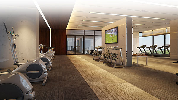 ภาพจำลองห้องออกกำลังกายพร้อมอุปกรณ์ที่ชั้น 7
