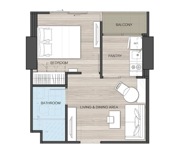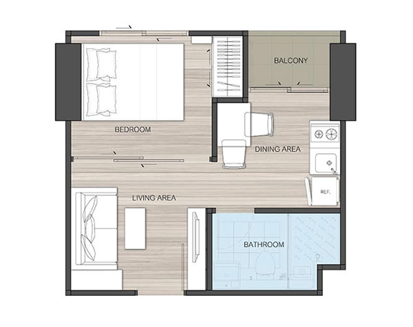 Lay out ห้องแบบ 1 ห้องนอน 1 ห้องน้ำ ขนาด 30.10 ตร.ม. ห้อง TYPE นี้จะกั้นห้องนอน