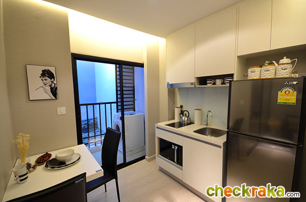 และพื้นที่ห้องครัวได้เป็นสัดส่วนมากกว่าห้องตัวอย่างไซส์เล็กอีกห้องนึงค่ะ