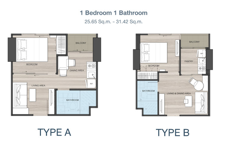 - ขนาดตั้งแต่ 25.65 - 59.37 ตร.ม.