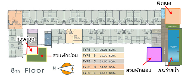 ชั้นที่ 8 จะเป็นยูนิตที่พักอาศัยและส่วนกลางค่ะ