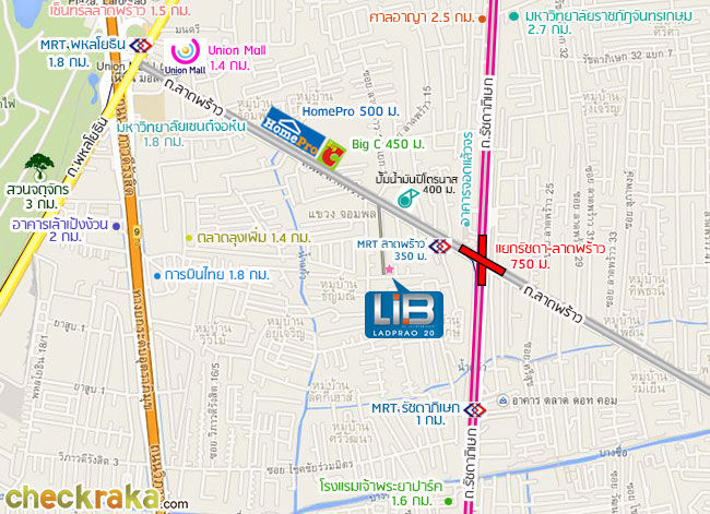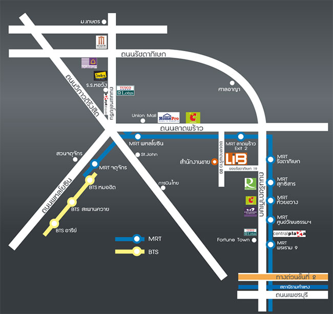 รถไฟฟ้า MRT สถานีลาดพร้าว (อยู่ห่างจากโครงการประมาณ 0.35 กม.)