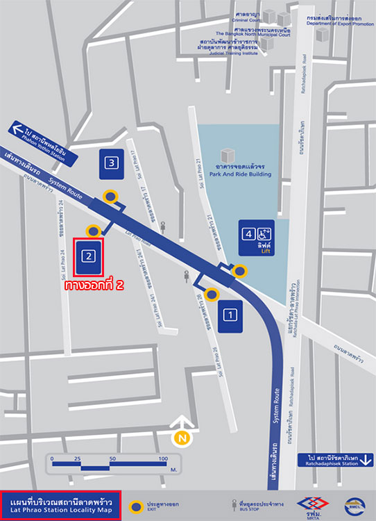 แผนที่บริเวณสถานี MRT ลาดพร้าว เลือกใช้ทางออกที่ 2 ซึ่งใกล้ตัวโครงการมากที่สุด