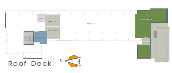 สำหรับสีเขียวๆ ที่เห็นในชั้นดาดฟ้านี้จะเป็นสวนดาดฟ้าค่ะขึ้นบันไดจากชั้น 8 ตรงสระว่ายน้ำไปนิดหน่อย