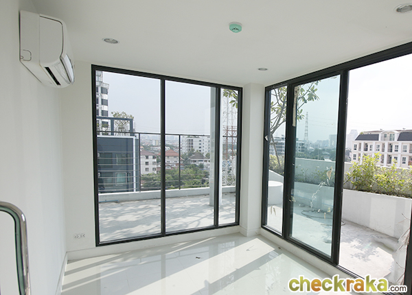 โดยแต่ละส่วนนั้นจะมีประตูกระจกแบบบานเลื่อนกั้นเป็นส่วนๆ ส่วนห้องนอนก็จะอยู่ลึกเข้าไป