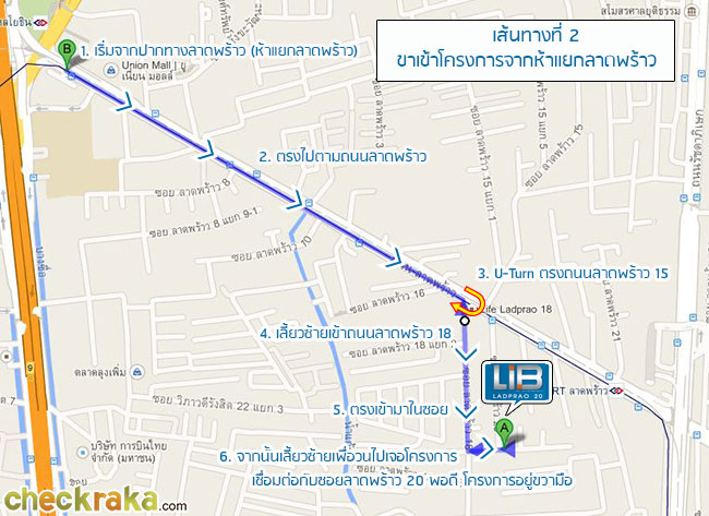 เส้นทางที่ 2 - ขาออกโครงการ ออกไปเจอป้ายรถเมลล์ (ปากซอยลาดพร้าว 20) และ MRT สถานีลาดพร้าว