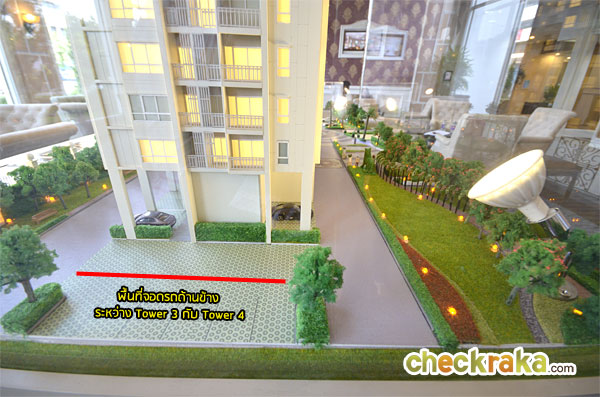 โมเดลจำลองตำแหน่งลานจอดรถด้านข้างบริเวณชั้น 1 ระหว่างอาคาร 3 กับอาคาร 4