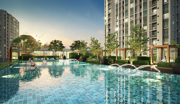 ภาพจำลองบรรยากาศสระว่ายน้ำแบบ Infinity Edge Pool ขนาด 10 x 39 เมตร