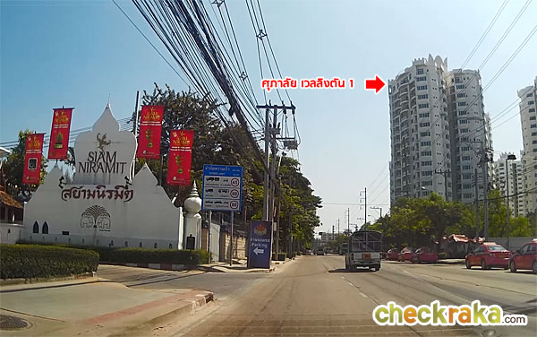 จากแยกตรงมาประมาณ 500 เมตร จะเจอสยามนิรมิต อยู่ทางซ้ายมือ ให้เราขับตรงไปค่ะ