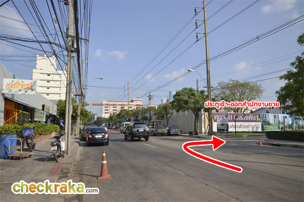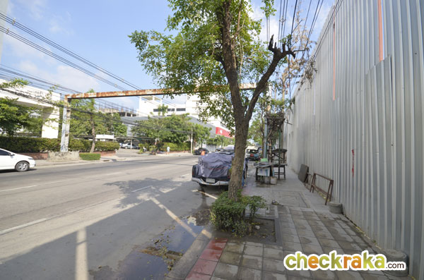 มองจากประตูออกไปจะเจอกับถนนเทียมร่วมมิตร ซึ่งเป็นถนนวันเวย์