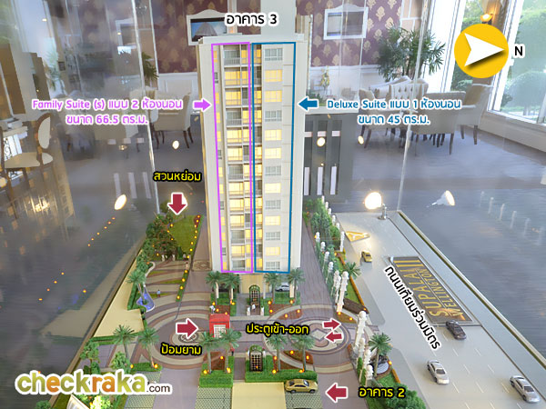 โมเดลจำลองตำแหน่งประตูทางเข้าโครงการหระหว่างอาคาร 2 กับอาคาร 3