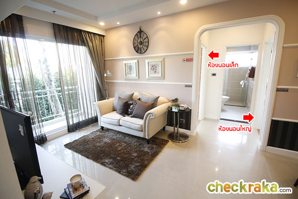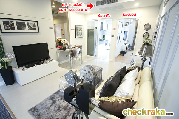 ต้องบอกก่อนเลยว่าโครงการนี้ ขายเป็นแบบห้องเปล่านะคะ มีให้แค่แอร์ วอลล์เปเปอร์สีขาว-ครีม และชุดครัว Built-in (ไม่รวมเครื่องใช้ไฟฟ้า) และอุปกรณ์มาตรฐานภายในห้องน้ำเท่านั้น ส่วนเฟอร์นิเจอร์ไม่มีให้นะคะ ที่เห็นในภาพเป็นเพียงของตกแต่งที่จัดให้ดูเป็นไอเดียเท่านั้นค่ะ