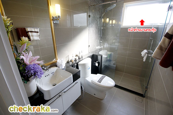 ห้องน้ำนี้ใช้สำหรับห้องนอนเล็กและห้องรับแขก ใช้วัสดุและสุขภัณฑ์เหมือนห้องน้ำในห้องนอนใหญ่ทุกอย่าง