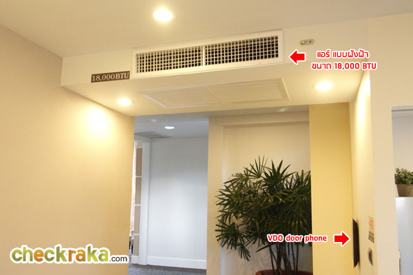และแอร์แบบฝังฝ้าขนาด 18,000 BTU อยู่บริเวณประตู (แต่ห้องตัวอย่างไม่ได้ทำประตูมาให้นะคะ)