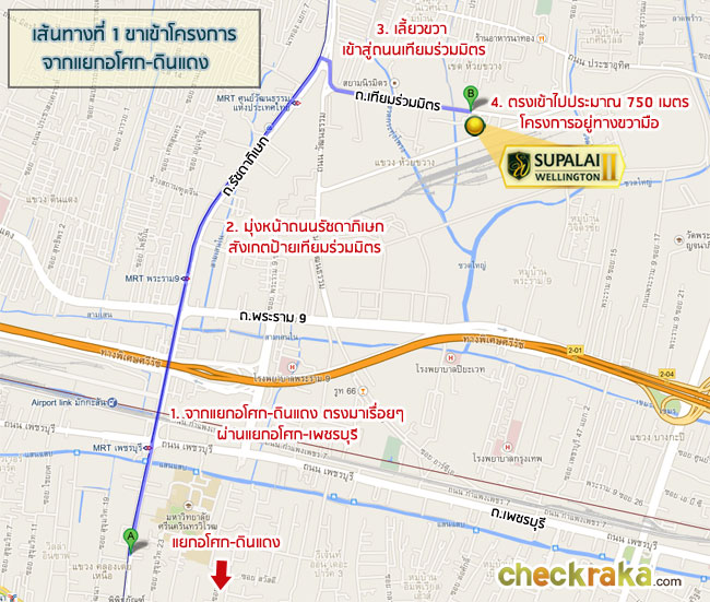 เดี๋ยวเรามาดูการเดินทางจากแยกอโศก-ดินแดง จนมาถึงตัวโครงการ ศุภาลัย เวลลิงตัน 2 กันค่ะ